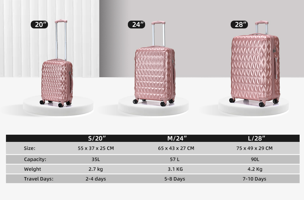 3-Piece Luggage Set for All Your Travel Needs – This set includes three suitcases: a 20-inch carry-on, a 24-inch medium checked bag, and a 28-inch large checked bag, providing flexibility for short trips, extended vacations, and family travels.