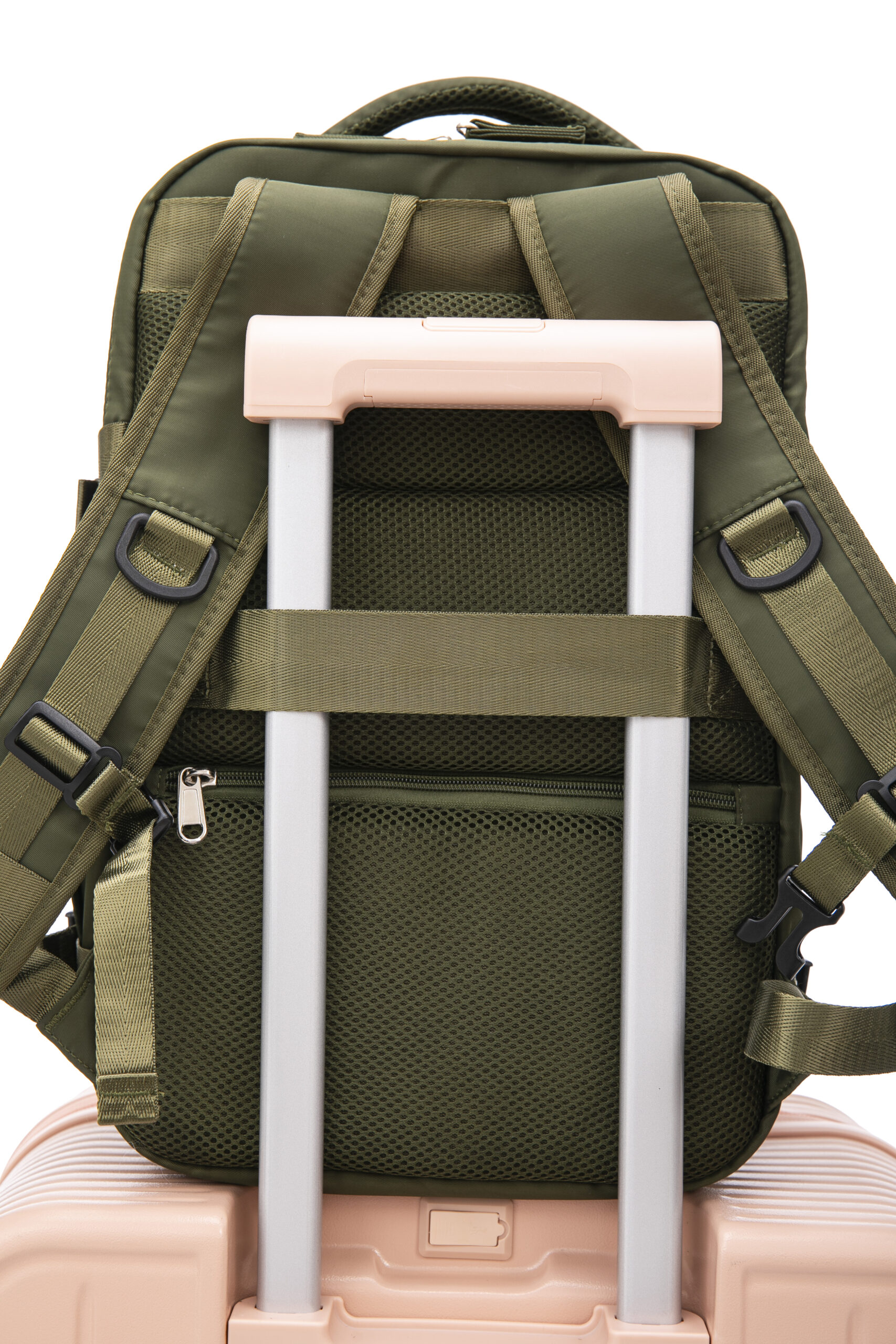 Although its dimensions of 40x20x25cm 20L, this flight bag ‘s multiple pockets ensure organized and easy storage. It includes dedicated compartments like the main compartment, wet pocket, large mesh pocket, passport pocket, anti-theft pocket, 2 side pockets, versatile front compartment, and 13.3″ separate laptop pocket. This design simplifies organization, making items easy to locate.